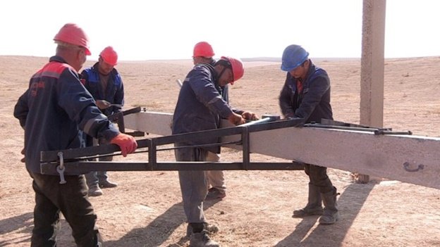 Арслан ЖУНДИБАЕВ, мастер электрических сетей Сарыагашского района ТОО «ОңтүстікЖарықТранзит»:» «В рамках инвестиционной программы мы меняем опоры линии электропередач, которые соединяют села Алимтау и Сарысу. До конца 2020 года мы должны завершить обновление линии протяженностью более 11 километров. Сейчас на этом участке работают три бригады из Шымкента, Шардары и Сарыагаша.