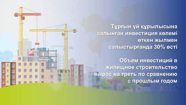 За этот период в жилищное строительство привлечено инвестиций на сумму 1,7 трлн. тенге, что выше уровня 2019 года на 33,4%.