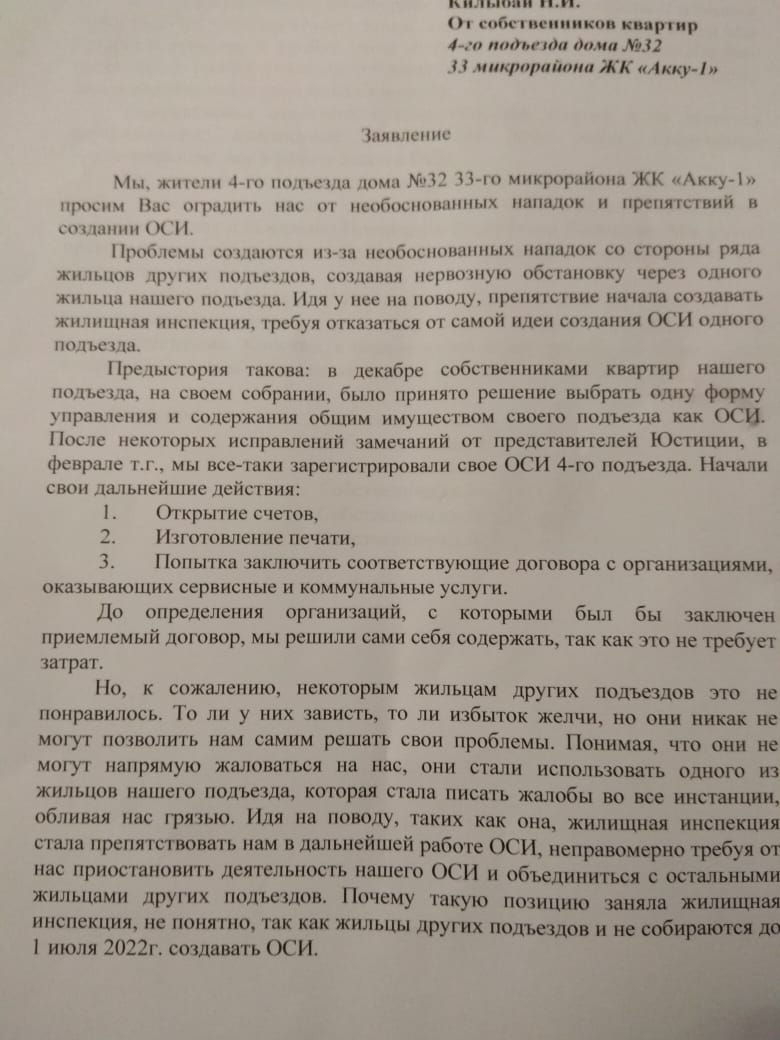 Ситуацию, сложившуюся в одном из домов г. Актау собственники изложили в письме, которое опубликовано ниже.