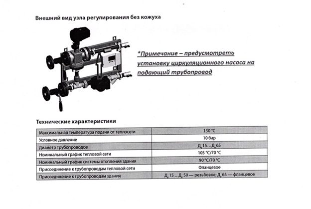 «Типовые автоматизированные узлы управления заводской готовности должны включать в себя регулирующую и запорную арматуру, погодный регулятор в комплекте с датчиками температуры, а также циркуляционный насос с защитой от сухого хода. Комплектующие оборудования должны соответствовать характеристикам, в зависимости от параметров объекта конкретного жилого дома», — сказано в документации.